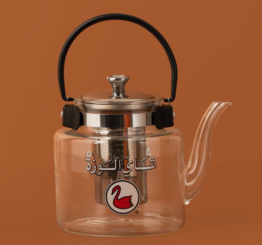 إبريق زجاجي أنيق وراقي بشعار شاي الوزة - سعة 1.2 لتر